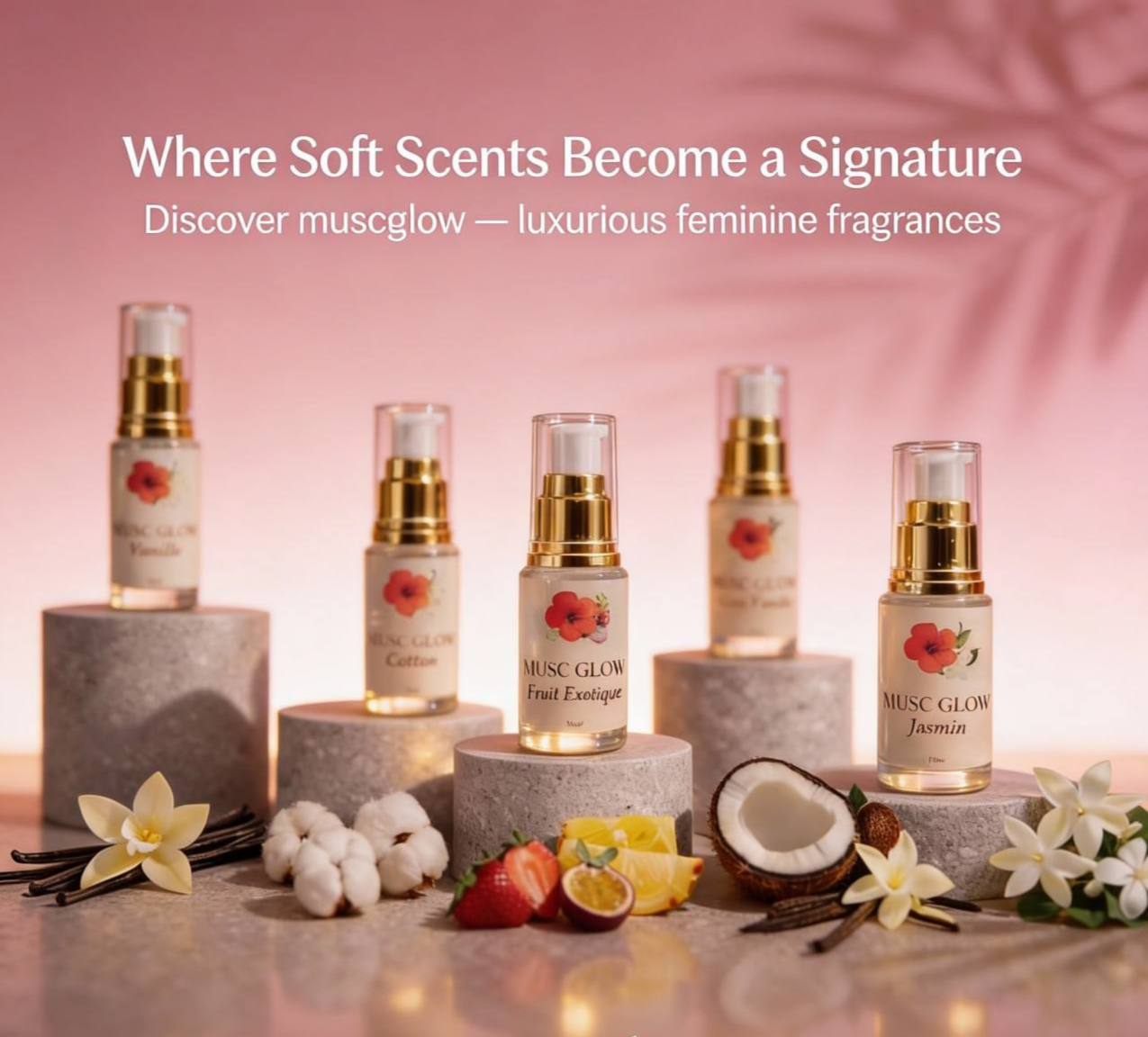 Découvrez l’univers de la douceur, de la féminité et de l’élégance avec MUSC GLOW — une collection de parfums pensée pour sublimer chaque instant et laisser un sillage inoubliable.